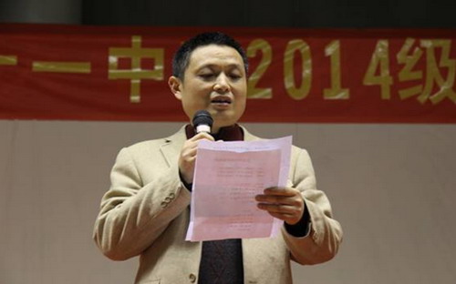 年级组长马凯宣布受表彰的同学名单