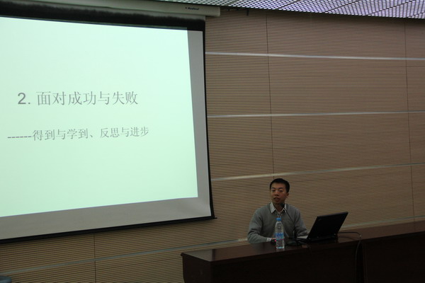 应邀而来的北京大学教授廖刚——我校高2003级的优秀学子,凭着勤奋的钻研,不懈的追求,十年蜕变,成为了北大数学教授。他以一张张朴实的幻灯片将他的游学之旅和游学体悟娓娓道来,向同学们展示了他通过广博的数学知识换回的丰富生活以及“人生在于选择”、“成功在于奋斗”等经验,其中关于辩证看待机遇的讲解和思维胜于做题的看法尤其给人启发。那一组夺人眼球的海外游学照片更是赢得了同学们的欢呼,让然羡慕不已。讲述之余,他还干起了北大清华的宣传员,用迷人的校园风光和大气的科研数据激励同学们要在学习中把握方向、找准方法、拼搏奋斗,大家也在一片感叹中坚定了信心。“这是一次优雅而令人激动的座谈。”潘文荣主任这样评价。