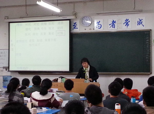 3月11日,伍宜前和梁龙全两位老师以学生容易混淆的诗歌手法这一知识点为同课异构的主要讲点,在CBD校区展示公开课。
