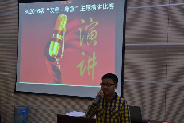 3月19下午,初2016级“友善·尊重”演讲比赛在体育馆阶梯教室进行。来自14个班的28名学生进行了精彩演讲。他们或从生活琐事中,或从事业成败的故事里谈友善、谈尊重;他们或引经据典,或娓娓道来,或纵横古今,或飞跃中外,淋漓尽致地展示出自己青春的热情与飞扬的才华!也让在座的年级师生接受了一次“友善”思想的洗礼,共享了一次“尊重”精神的盛宴!!!