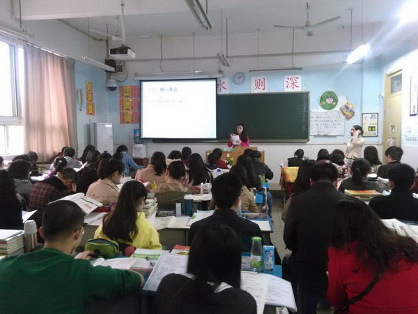 2014年3月27日,高三政治备课组郑云霞老师和陈晨老师就“生产与消费”这一个专题的二轮复习策略进行了同课异构,高中部全体政治教师参与听课。