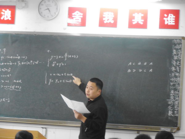 2014年3月19日,马凯、梅均、唐可老师在CBD校区为全校数学老师展示了“参数方程”测试题的同课异构评讲课。