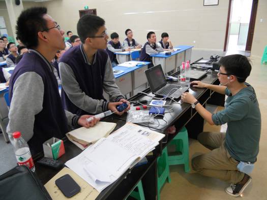 2014年4月17日,高二物理备课组董洪琼和韩伟两位老师为全校老师奉献了两堂精彩的实验探究课。