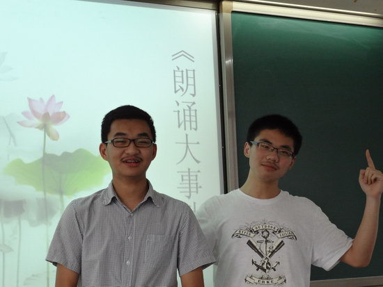 本次比赛的一等奖授予了朗诵《这里是四点零八分的北京》的袁瑞与陈俊江同学,而这次的表演堪称经典:对于一首描写文革青年的诗,两位同学声情并茂、节奏紧凑,分明就让人听了那离别的车站里告别的声浪、感受到“妈妈缀扣子的针线穿透了心胸”……而我们正在诗人的年纪,就在这相似的下午,这怎能让人不为之动容呢?