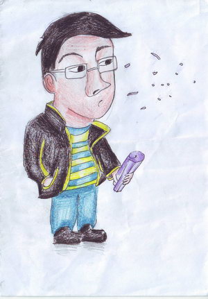 开学几周后,应老师召集几个宣传委员,让他们根据每个学科老师的特征,画出老师们的卡通形象。几个同学分配任务,构思,画草稿,涂上颜色,扫描进电脑,做成老师形象墙。经过反复地修改以及全班同学的帮助下,没过多久,几个活灵活现的老师卡通形象就摆在了大家的眼前:体育老师脖子上挂着口哨,音乐老师唱着动听的歌,历史老师衣着古装拿着扇子……