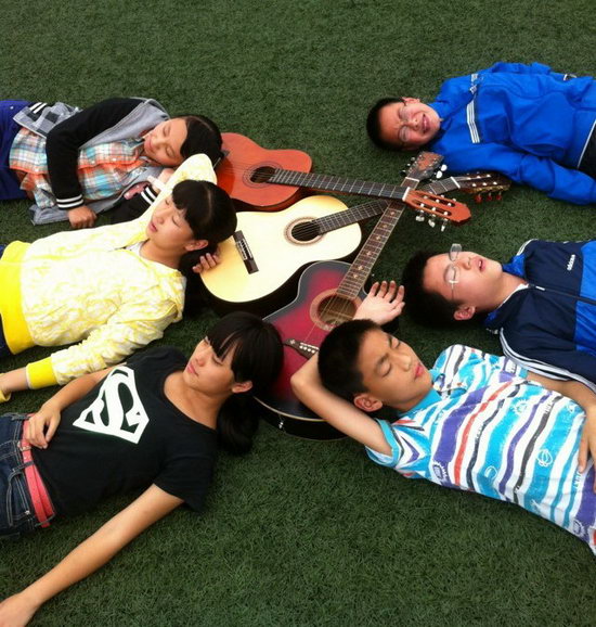 吉他: 肖天昊 我们班的理科学霸。但在他身上你找不到任何学习的压力。他就是这样,每天过的都很快乐。浅棕色的吉他是他在课余生活里形影不离的好伙伴。