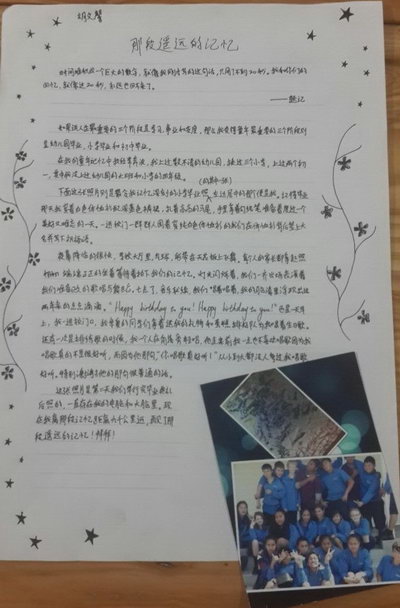 6月初,我们初2016级3班在语文张老师的组织下开展“老照片下的故事”手抄报展示活动。本次活动的初衷是让同学们感受亲情、友情、热爱自然之情。同学们投入了极大的热情,积极参与。老照片的展示,有的是与儿时小伙伴们的合照,有的是与家人的旅行,还有的是一次值得纪念的活动。它不仅为走廊添上了一段漂亮的风景线,也锻炼了同学们的动手实践能力。此次活动更切合学校的办学理念,让学生成为博采广撷、修身励志、人格完满、全面发展,并体现十一中文化特色的学生。此次活动得到了班主任赖老师的大力支持。