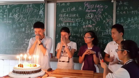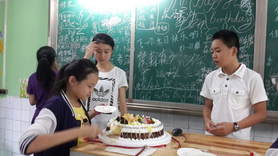 2014年9月28日晚上17:30 ,初2016级6班的同学在教室举行了一场难忘的“九月生日会”,同学们纷纷为4位小寿星送去最诚挚的祝愿。一个温馨的祝福,一片灿烂的心情。漂亮的生日蛋糕象征着小寿星们的花季生日,而那一层层的蛋糕是我们的片片祝福,甜甜淡淡的奶油香则是他们所有的美丽心愿。生日的烛光已经照亮了小寿星们灿烂的笑脸,那苒苒的烛焰,是青春的旋律在轻声地吟唱。黑板上,是同学们的满满祝福,一字一句,一笔一划,无不流露出同学们之间真挚友情和温暖。每位同学虽只有一小块蛋糕,但是却吃出了甜蜜,嗅到了幸福,感受到了班级的和睦和温馨。这份珍贵的礼物将被我们永久珍藏,这是难忘的一刻,容颜会老去,繁花会凋零,但是我们所拥有的温馨的生日会记忆,将会与纪念册一起永存!