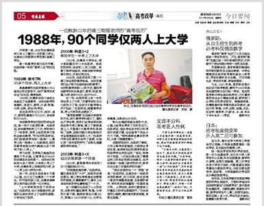 这一年,吕老师班上有一半的学生考上了大学。“尽管考试科目比之前的少了些,但孩子们备考得也并不轻松。”吕老师说,随着高考改革,考上大学的机会更多了。