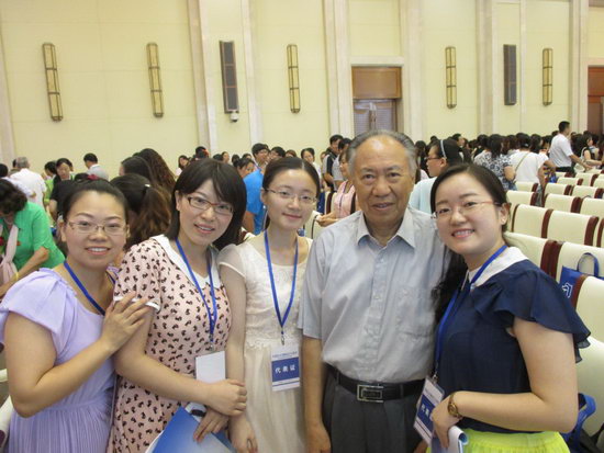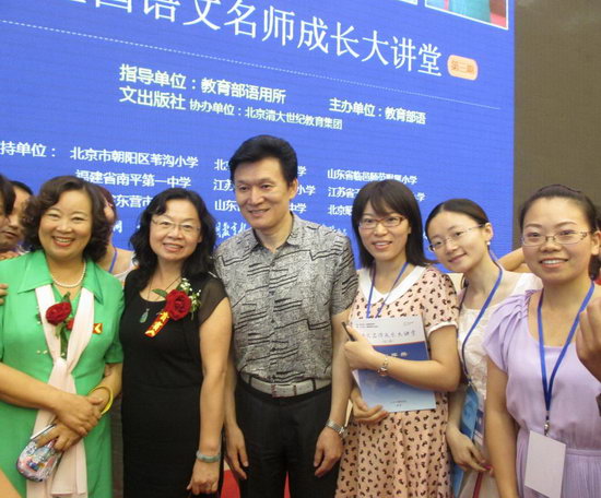 2014年7月11日至14日,由教育部语言文字应用研究所指导、教育部语文出版社主办的“全国语文名师成长大讲堂”第三期主题研修班在北京华北宾馆开讲。 真语文系列活动总顾问、国家语委咨询委员会副主任柳斌,教育部语言文字应用研究所所长张世平,中国教育学会原常务副会长郭永福,首都师范大学中文系教授饶杰腾,著名表演艺术家方青卓,以及来自全国各地近1200名语文教师参加了活动。非常荣幸、也非常感谢学校能给作为新老师的我们提供这样的机会,让老师一起到北京感受名师的风采,聆听教育的声音。