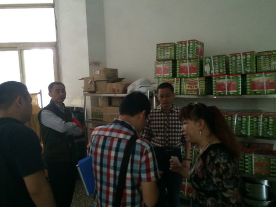 (图2: 陈志友主任(左2)及陈勇(右2)老师协同食品监管部门逐一检查各油粮仓库。)