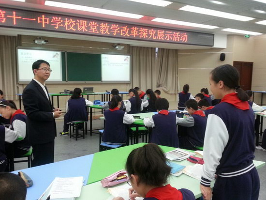 10月28日上午,初2017级敖天明老师与初2016级王远建老师就海伦·凯勒《再塑生命的人》一文进行了同课异构展示。