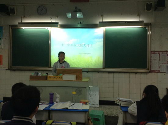 班会的目的是为了筛选出一些独特风采的代表词汇,代表个人、班级、学校的形象。同学们非常积极地参加到评选中来,“清新、乐观、积极、阳光、纯洁”等都是大家提出的热门词汇,尽管最终只需要5个最有代表性的词语,但大家仍然积极表达自己的意见。