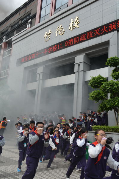 在这次消防演习活动中,七八级全体师生反应迅速,老师们及时到位,从容疏导;学生们行动快速,撤离有序,充分展现了十一中人应对突发事件的应急能力与应急风采!