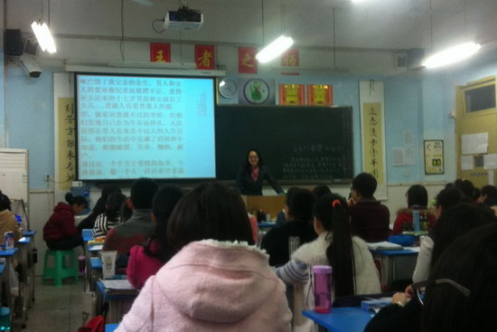 黄伟老师侧重于从话题的构建角度来分析关系型话题的几种主要关系,诸如因果、对比、并列、辨证统一等,注重方法,强调落实,课堂绵密有序,师生互动积极,学生反馈良好;钱序宜老师以三个比喻的形式,主要分析了话题作文的实质——一个吸聚思维的原点,一抔激发思考的土壤,一个表达情思的舞台,形象生动地阐述了话题作文的根源性要求。钱老师注重思维的培养,深入浅出,有发散有聚合,收放有度,学生的讨论也自然呈现出多元化倾向。课后,老师们积极讨论,将话题作文的审题立意这一知识点进一步明确细化,效果良好。
