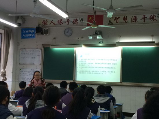 2014年11月13日上午,高2016级政治组周霞老师与高2017级王伟老师的同课异构展示课分别在高一(15)班和高一(3)班进行。本次同课异构以《股票、债券和保险》为内容,积极坚持“先学后教、独立思考、合作探究”的原则,分别展示了两位老师的不同上课特色。
