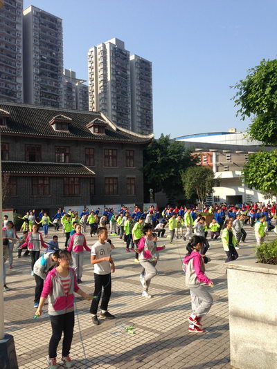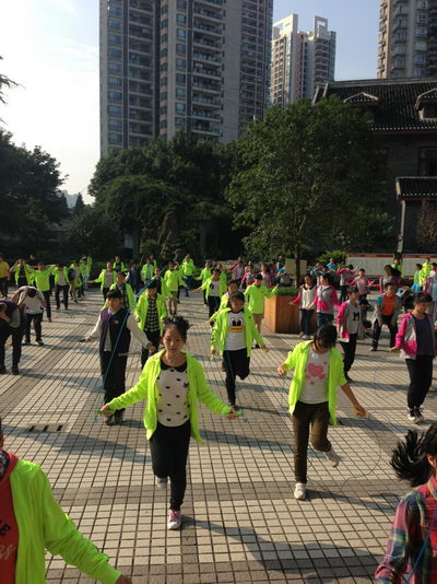 每天,歌曲响起,充满了激情的学生们,在老师的指导下,认真地完成着每一项锻炼。学生们每一动作都做得非常的有力,激情随着他们的呐喊声尽情地在释放。老师将发出的口号声提高,而学生们的呐喊声也随着老师的口号声一次比一次铿锵。
