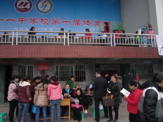 11月21日上午,重庆市十一中学校联合区公安分局校保支队对全校师生开展了反恐宣传教育。