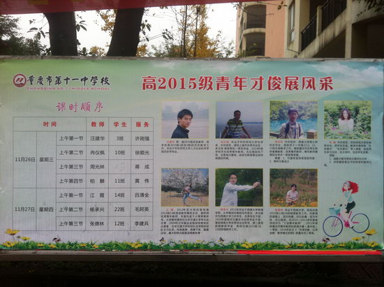 青年教师的成长,既关系着其个人的终身发展,又关系着学校的可持续性发展,为此,高2015级年级领导小组仔细讨论,慎重研究,并报请学校审批,决定于11月末举行青年才俊展风采赛课活动。消息一传出,江霞、汪建华、冉仪枫、杨承兴、张德林、柏麟、周光林等老师踊跃报名参加。