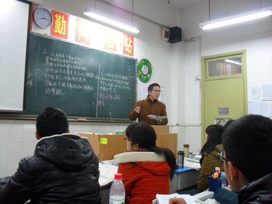陈军老师题为“人物描写之心理描写”。课堂上,陈老师详细列举小说《安娜卡列尼娜》中安娜与渥伦斯基相会、相恋、以及生活中遭遇的重重矛盾时安娜的心理活动,重点阅读安娜之死时的心理活动,并且分析其活动的作用。该课切入点小,覆盖面大,生动活泼,拓宽了学生的视野。
