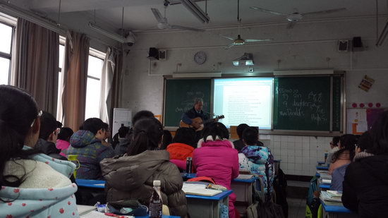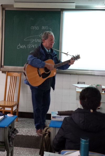 Bill手弹吉他,为我们唱起了《Blowing in the wind》,口语课结束了,但一颗心对世界不同文化探索的梦已深深埋入我们每个人心中。