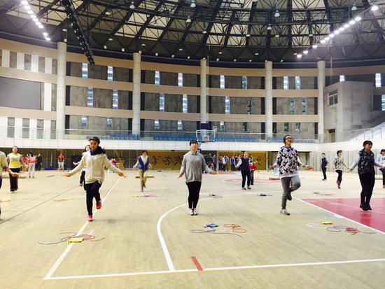 这次体育期末考试,经过初三年级体育老师的精心组织,在2015年1月5日以中招体考完全标准的格式进行,最终圆满完成。