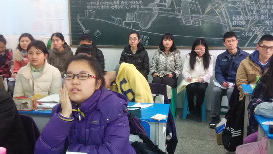 2015年3月1日,北大学长严鹏飞在我校高2015级5班教室对高2015级文科优秀学子进行演讲。严鹏飞,我校2011级文科学子,以优异的成绩考入北大,获政府管理学经济学双学位,保研复旦大学。