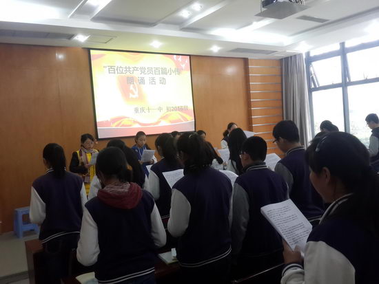 3月9日下午第三节课,初2016级三好学生参加了“百位共产党员百篇小传朗诵活动”。