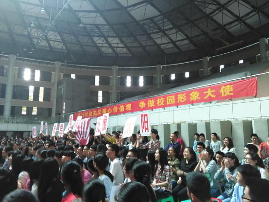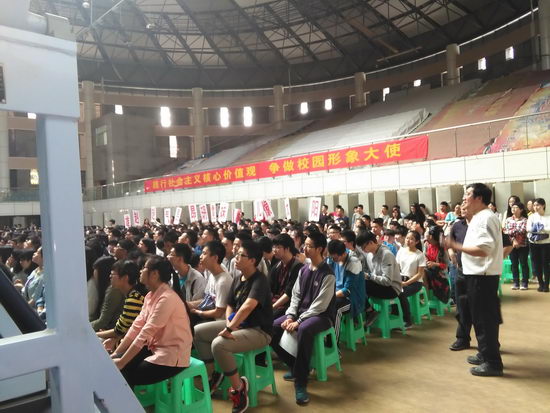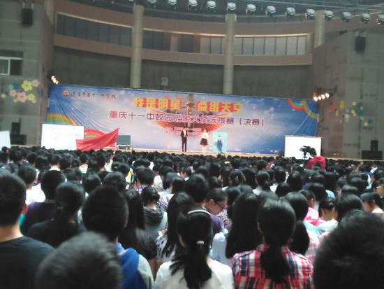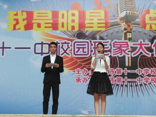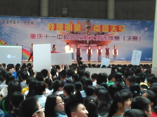 2015年3月30日星期一下午第二节课后,学校体育馆上演了一场校园形象大使选拔赛的巅峰对决,来自高二年级1班、9班、20班的3位形象大使王玬霓、鲁力、何云霞为现场观众充分展示了11中学子的风采。