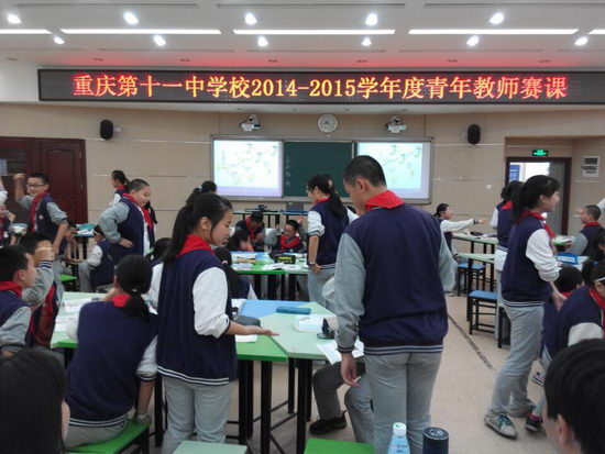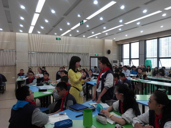 课堂伊始,余老师带着学生进行游戏体验,营造出热烈的课堂氛围,充分调动起每位学生的积极性,现场一片热闹,并让学生在游戏中思考与感悟,引导学生自主生成挫折及挫折感的含义。随后,通过最美孝心少年重庆女孩吴林香的视频,引发大家的深思,让学生通过自己与小女孩鲜明的对比,感受到其他同龄人生活的坎坷。紧接着,学生在余老师的鼓动下,积极参与小组探究,争先恐后为这个小女孩出谋划策。在探究出应对挫折的方法之后,余老师将孩子们从别人的故事中回归到自己的生活经历,很多学生都有感而发,第一次勇敢地在那么多人的面前说出了自己的挫折,有的经历了父母的离异,有的忍受着别人的误会与不解,有的正在与病痛作斗争……孩子们说着说着,不禁潸然泪下,但是他们也表现出自己的决心和勇气,能勇敢战胜现在正经历的这些挫折,他们的经历他们的坚强打动了现场其他的听课老师!课堂最后,全体学生在余老师的带领下起立,并集体将之前写下挫折的那张纸撕碎放回每个孩子亲手制作的挫折回收站中,并吼出了响亮的勇敢宣言,当时的场面激动人心。