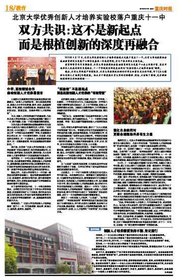 北京大学优秀创新人才培养实验校落户重庆十一中