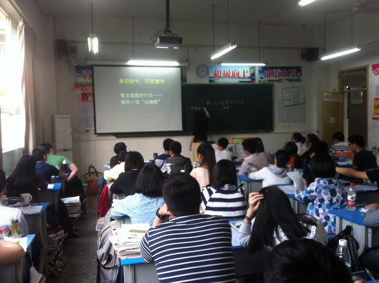 张俊老师首先抛出话题——一个好题目的标准是什么——切题、新颖、巧妙、精彩,以引起学生的兴趣,使得学生积极思考,踊跃发言。然后,张俊老师继续引导——好散文题目从那里借鉴?,学生纷纷举例并说出所以然。