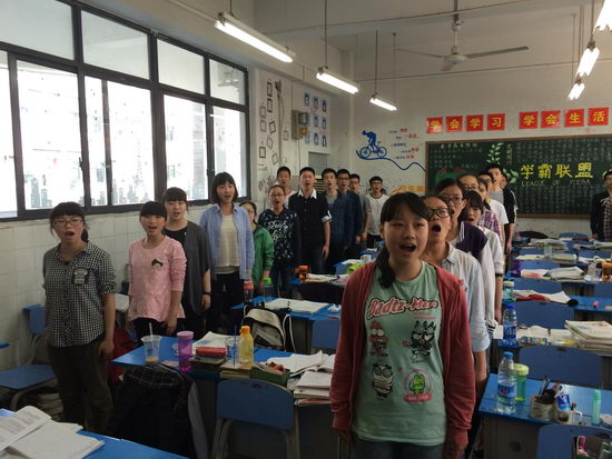 而后的训练中,同学们抓紧课余的每分每秒,在不少热心同学的带领下,我们为歌曲加入了许多创新元素,为之增色不少。每日在学习和训练的不间断“轰炸”下,大家虽疲惫不堪,却仍精神饱满,十五班“不服输”的精神就是我们最大的信念!当然,准备期间,也离不开许多老师的热情帮助,他们和我们一起努力着、期待着!