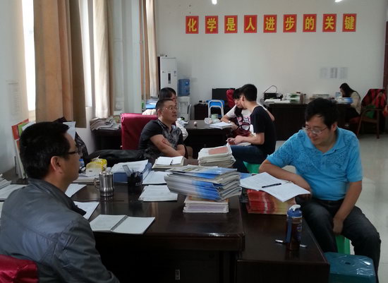 2015年5月11日早晨7点50分,高2016级化学备课组六名老师来到CBD校区,走进高三21班教室,由张玉老师奉献了一堂精彩的公开课,课后,由高三年级的老师详细介绍了高三后期复习安排和冲刺策略,高二的老师在向高三年级老师取得的成绩表示祝贺的同时,也虚心学习高三年级的经验,并应用于后期的教学中,最后,衷心祝愿高三年级再创辉煌,在27天后的高考中再创佳绩。