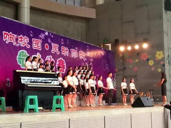 2015年5月6日下午一点半,高2017级的所有同学在学校的体艺馆举行了“唱响校园,灵动你我”的歌咏比赛。