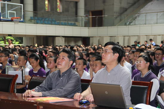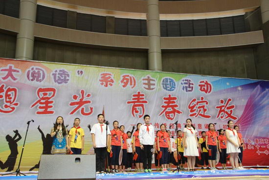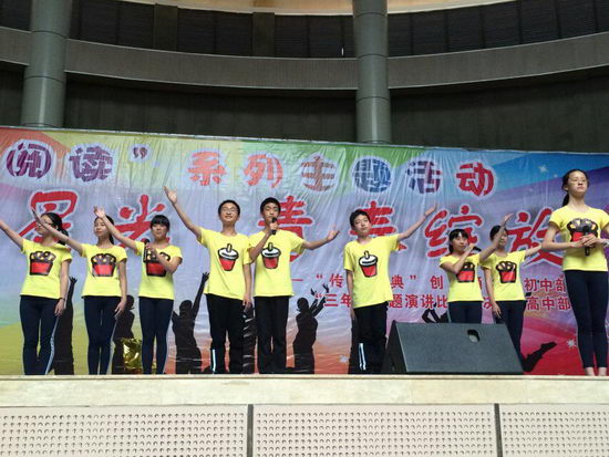 2015年5月19日下午,在体艺馆中,明亮的灯光下照映着我们飞扬的青春。在今天,各班翘首以盼的“经典诵读”活动终于开幕了!伴着头顶的灯光,随着耳畔的音乐,看着眼前黑压压一大片的观众,想必表演者们心中也是既紧张又兴奋的吧!