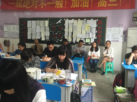 最后,两个备课组的老师还就高三一轮、二轮的复习方法和策略进行了充分的讨论和交流,大家畅所欲言,毫无保留地谈自己在教学中的得与失、经验和教训,使老师们互相借鉴、共同进步,收到了非常满意的效果。