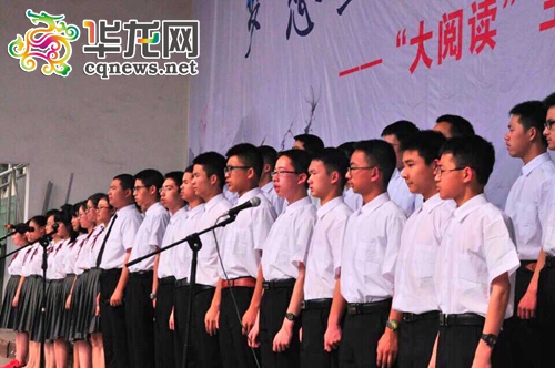 华龙网讯(黎立)“故今日之责任,不在他人,而全在我少年。少年智则国智,少年富则国富,少年强则国强……”5月18日,重庆十一中千余学生来到操场,以齐诵《少年中国说》的方式迎接学校“大阅读周”活动的到来。