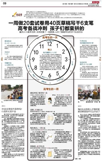 要问这段时间高三学生的家庭作业到底有多少?重庆晨报记者了解到,无论文科班还是理科班学生,高考的科目,平均两天完成一套卷子。