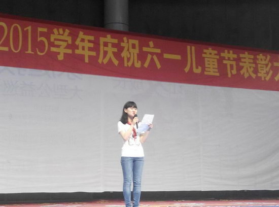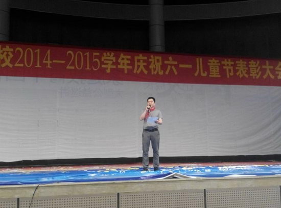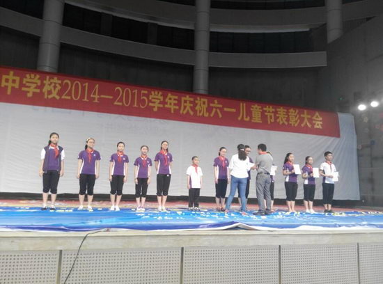 在下午在体艺馆中召开的表彰大会上,欧宾大伯伯首先为我们欢度六一而献出了最真挚的问候。从他的语气、词汇中我们看到了他的童心未泯。