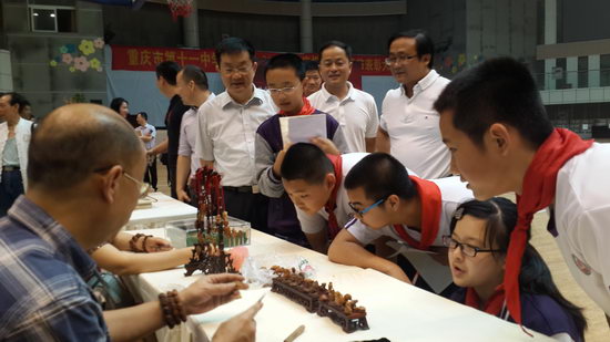 6月2日上午,初2017级16班、10班等班级被选中与南岸区副区长莫裕全同志一同参加在校体艺馆举办的第6届“文化遗产月”系列活动。