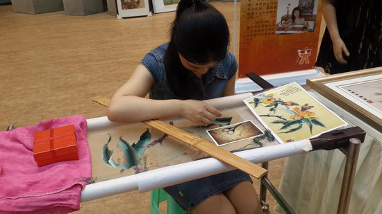 其中,最吸引同学们的是烙画。烙画是利用发热的金属接触薄木板使其碳化的原理绘画,产生茶褐色基调,并运用技巧产生浓淡不同的色彩,绘画出一张张精美的图画。烙画于2014年1月被列入重庆市人民政府公布的第四批市级非物质文化遗产名录。