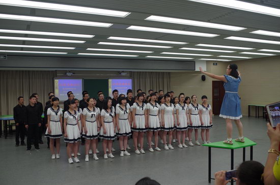 2015年6月13日下午,高二、20班的同学及其家长与班主任朱习江老师相聚在修德楼的多功能教室,开展了一场别具特色的班会课。同学们换上整齐划一的服装,以嘹亮的歌声,为家长们展现了二十班一贯的精神与风采,并以此拉开了班会课的序幕。接下来,朱老师通过制作精美的PPT以及条理清晰的描述,从成绩分析,习惯培养,心态调整,高三准备,学习规划等多个方面为家长分析了同学们近阶段的学习情况,描绘了高三的学习展望,加深了家长对孩子学习情况的掌握和高三生活的了解。在严肃而不失温情的融洽氛围中,班会课取得了圆满的成功!