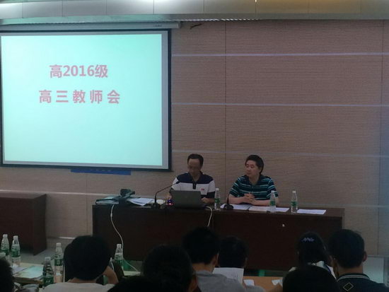 学校党委书记、校长钟进友,副校长李顺林,教务处唐主任以及相关行政干部、全体高三教师参加会议,会议由李校长主持。