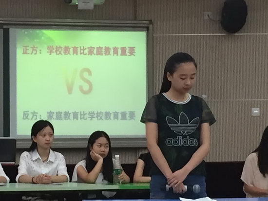 我们以教育教学和德育发展两方面为依托,根据现阶段学校教育存在的问题进行多角度探讨,用情景展示的方法展示“传统教学”和“分组教学”的区别,用成果展示介绍现代“励志教育”的作用,用辩论的方式探讨学校教育和家庭教育的关系。