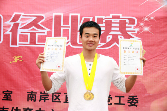 在初为人师至今的4个年头里,先后获得学校“十佳青年教师”称号、年度音体美信息技术唯一“先进个人”奖、重庆市“优秀教练员”称号,今年他代表我区参加市教师基本功大赛获得团体一等奖和个人一等奖,这个不论是田径场上还是在教学跑道上“风”一般奔跑着的男子,在读高二时就有一个当田径教练,带出杰出学生运动员的梦,这个梦想支撑着他一直到现在从未改变。