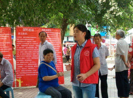 为进一步普及和宣传抗战胜利的意义,彰显抗战纪念日的意义,同学们接下来化身为解说员,借助现场的展板为观众逐一讲解了第二次世界大战的背景、历程和影响,并从现实的角度阐述了抗日战争的重大意义。这给现场的观众留下了深刻的影响。