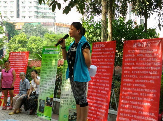 为了迎接即将到来的抗战七十周年纪念日,希望由此回首中国反法西斯战争的艰辛,弘扬中国抗战艰苦卓绝的优秀精神,更是以此警醒人们,勿忘国耻,珍爱和平。2015年8月21日下午15:00,重庆市第十一中学校Dream and Team社团主动联系重庆市南岸区王家沱街道在弹子石宏声广场举办了“反法西斯战争七十周年主题活动”。来自各小区各街道的群众观看参与了此次活动,取得了良好的社会反响。