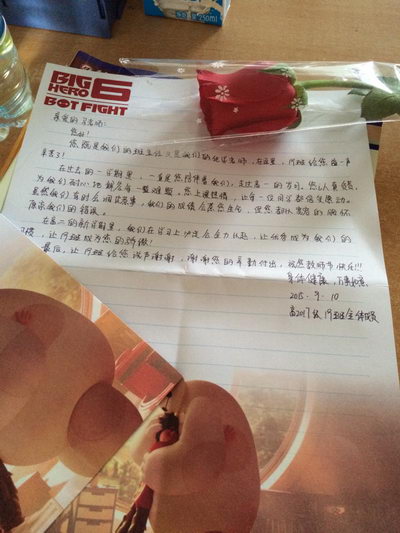 老师您不是明星,但我心中您是明星中的明星,三尺讲台焕发您的风采;您不是伟人,但我心中您是伟人中的伟人,方寸课堂塑造您的伟大。老师,您是我们心中永远的“大白”,不管何时何地,都对我们关怀备至!