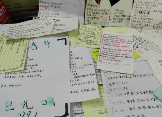 同学们迅速拿出工具制作属于自己的个性名片。伴随着剪刀声、画笔落纸的沙沙声,一张张名片展现在我们面前。心形、方形,“大白”形,真可谓花样百出。